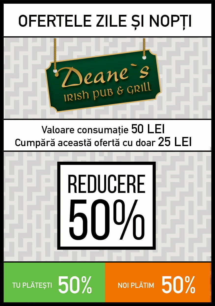 Pentru ca distracția să fie maximă, noi ne-am gândit să îți oferim un voucher de consumație în cea mai cunoscută locație din Brașov, pe care îl poți folosi împreună cu prietenii tăi. Reducerea este de 50%, mai exact consumi de 50 de lei și plătești doar 25 de lei.