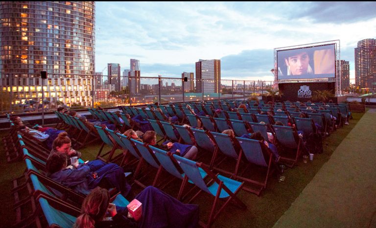 Londra oferă un decor puțin neobișnuit, o priveliște a orizontului de pe acoperișurile sale. Rooftop Film Club oferă proiecții de filme în aer liber, în 5 locații diferite de-al lungul capitalei, printre care Bussey Building din Peckham Rye și Kensington Roof Gardens.