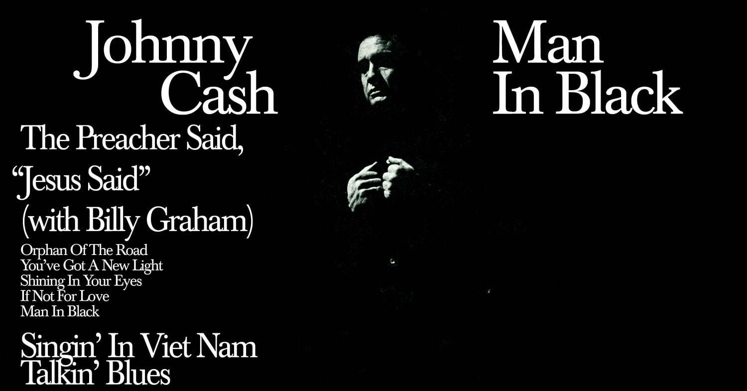 “Presupun că ne descurcăm foarte bine în mașinile noastre puternice și haine de lux / Dar doar pentru a ne aduce-aminte de cei ce sunt ținuți în spate, în față ar trebui să fie un bărbat în negru”, cânta Johnny Cash în melodia ce oferă titltul albumului lansat în luna mai a anului 1971, Man In Black.