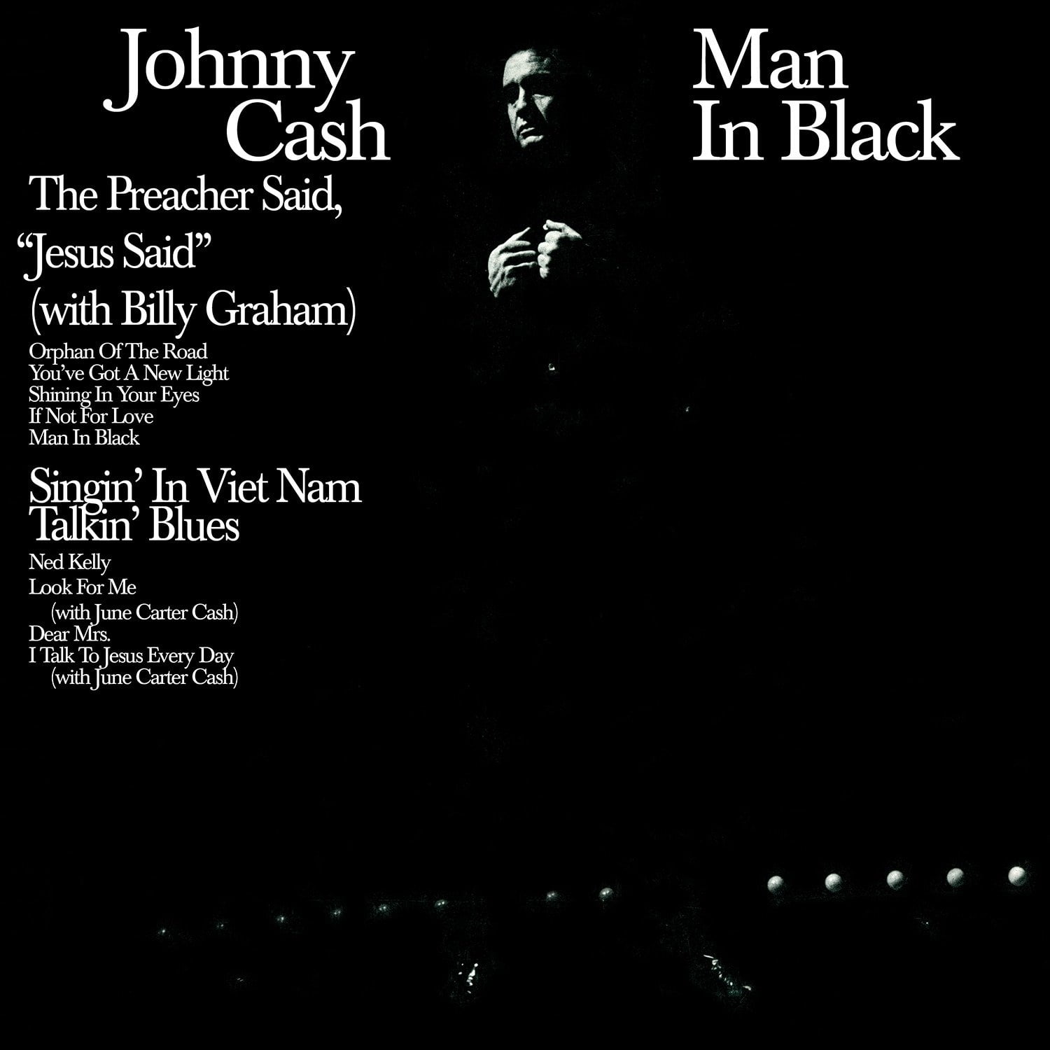 Lansat cu 50 de ani în urmă, LP-ul Man In Black oferă o călătorie unică prin lumea muzicii country, reprezentând un material discografic tipic genului, dar care înoată puternic împotriva curentului. Înconjurat de noile lansări The Who, Carole King, Rolling Stones, Led Zeppelin sau Black Sabbath, Cash continuă stilul cântecului de protest iar în mijlocul Războiului din Vietnam se “aruncă” vehement în tirade anti-violență inspirate din propriile experiențe din preajma câmpurilor de luptă. Astfel, Singing In Viet Nam Talking Blues, melodie centrală a albumului, devine o veritabilă declarație anti-război, compusă în urma unei vizite a cantautorului în mijlocul trupelor americane staționate pe tărâmul asiatic.