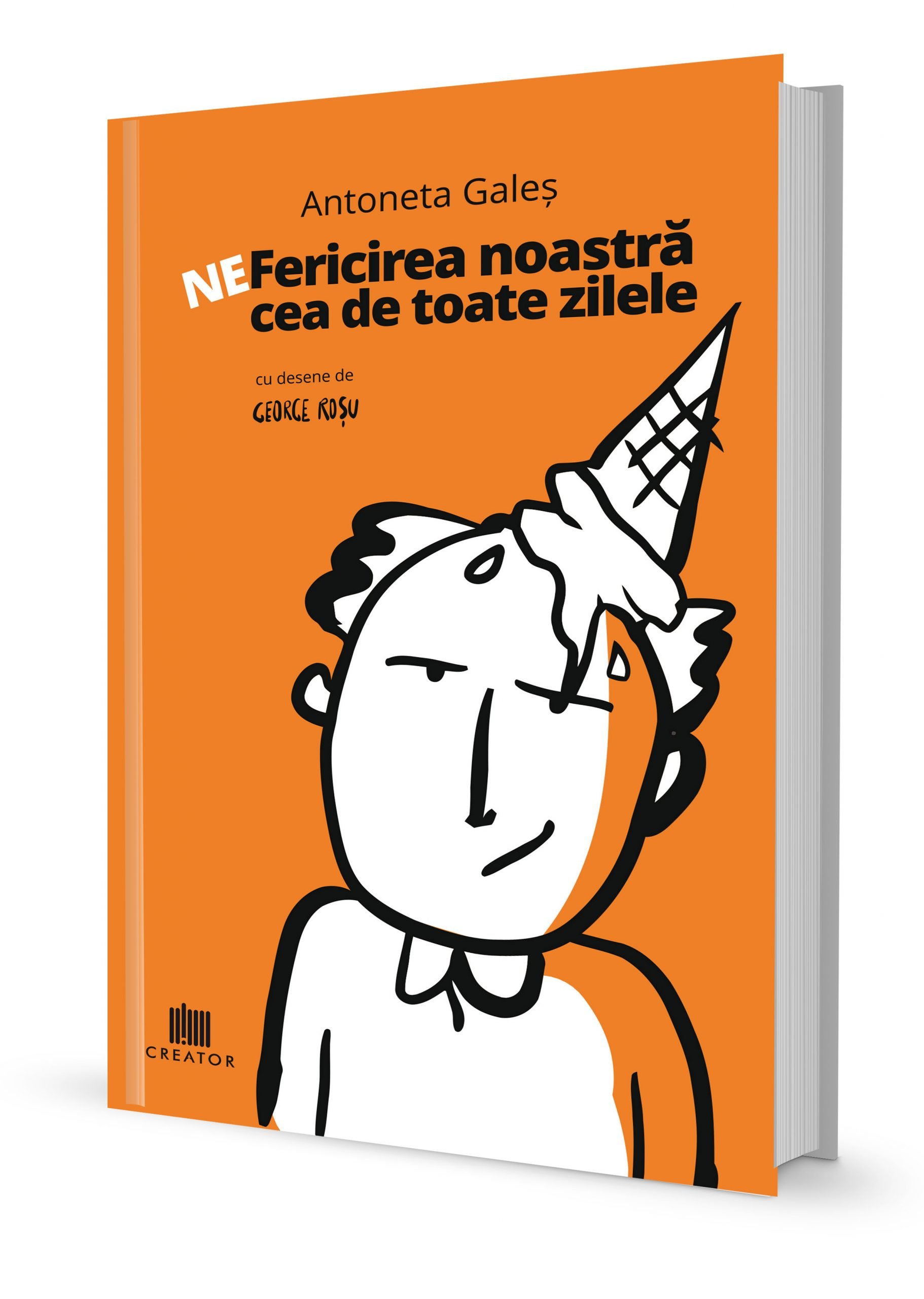 Cred că l-am întâlnit la un eveniment la HOF, o cafenea care nu mai există. Eu deja schițam caietul și l-am întrebat dacă vrea să facă ilustrația. A zis da și i-am dat textele și a desenat ce a vrut el, a avut libertate deplină. Iar ”Ne-fericirea” este o colecție de trăiri de-ale mele de-a lungul unui an de zile, colecție începută în martie 2019. Primeam inputuri pe mail de la cititorii care citeau ”Caietul”, este o carte foarte vie, sunt foarte multe referiri și explicații psihologice. Caietul și volumul sunt de fapt niște ajutoare pentru a-și adresa fiecare niște întrebări și a găsi niște răspunsuri.