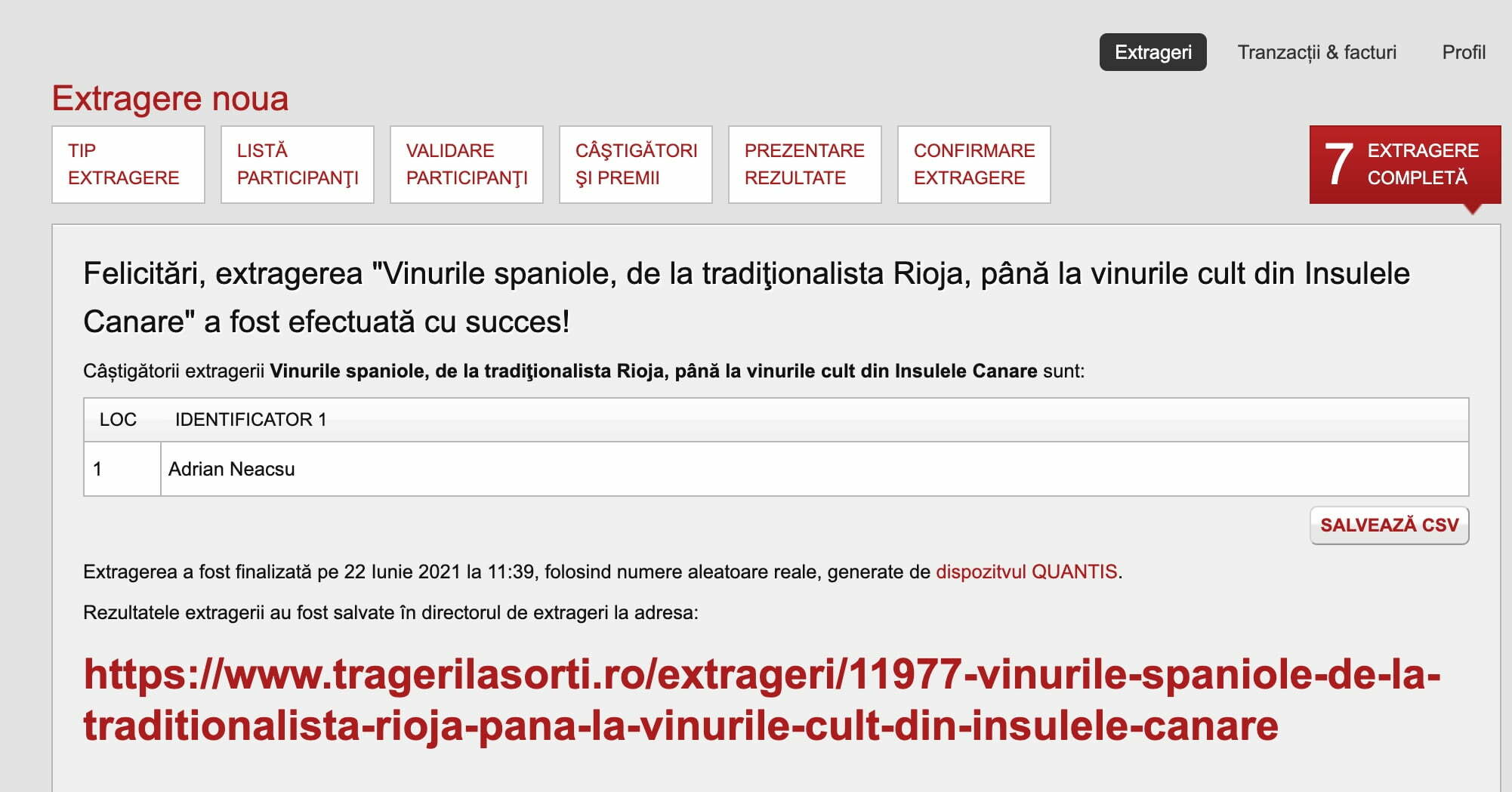 Câștigătorul va fi extras prin tragerilasorti.ro și anunțat marti, 22 iunie, la ora 12:00.