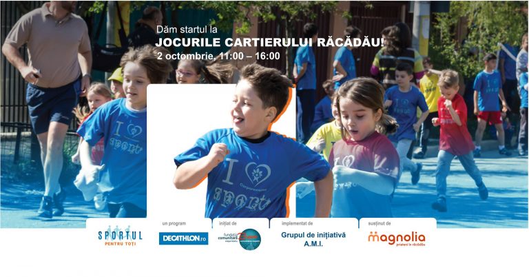 Sâmbătă, 2 octombrie, dăm startul primei ediții a Jocurilor Cartierului Răcădău! Vom avea concursuri, activități sportive și jocuri recreative prin care să redescoperim cu toții beneficiile mișcării.