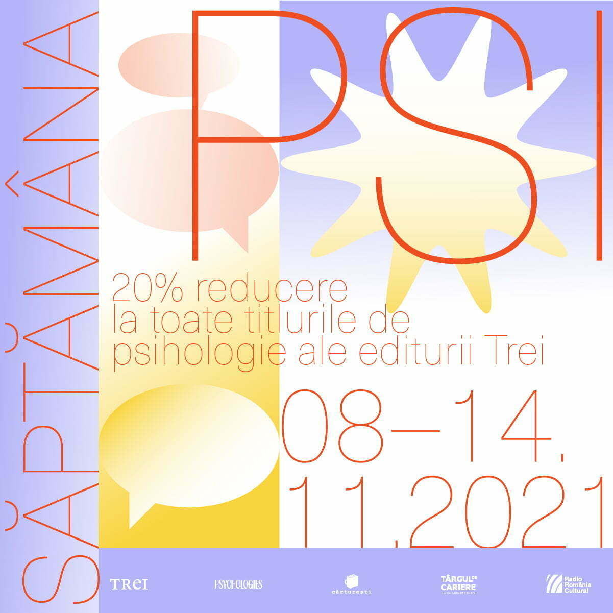 Despre toate acestea, în discuție cu psihologi și filosofi, cu specialiști în coaching sau sociologie, cei interasați pot afla într-o nouă ediție a Săptămânii PSI (8-14 noiembrie), în formulă online, transmisă live pe conturile de Facebook ale Editurii Trei, Librăriilor Cărturești și revistei „Psychologies”.