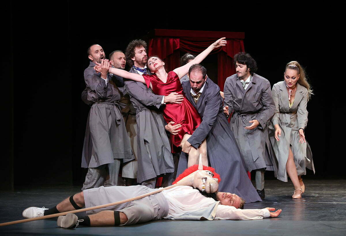 Gigi Căciuleanu, dansator, coregraf și om de spirit de talie internațională dă cu tifla provincialismului, ifoselor și ighemoniconului de odinioară într-o manieră contemporană, pe parcursul unei bufonade cântată, dansată și interpretată măiastru de o echipă strălucită. Coregraf al visului și caligraf al mișcării, Gigi Căciuleanu, cel mai vivace septuagenar al scenei și performance-ului din România, pune, de-această dată, să danseze replicile. Jucăuș cum altul nu știu, eruditul pișicher ne invită la un dans liric al minții în care ne prindem însuflețiți de-a lungul unui spectacol tonic și ironic, vivant și flamboaiant.