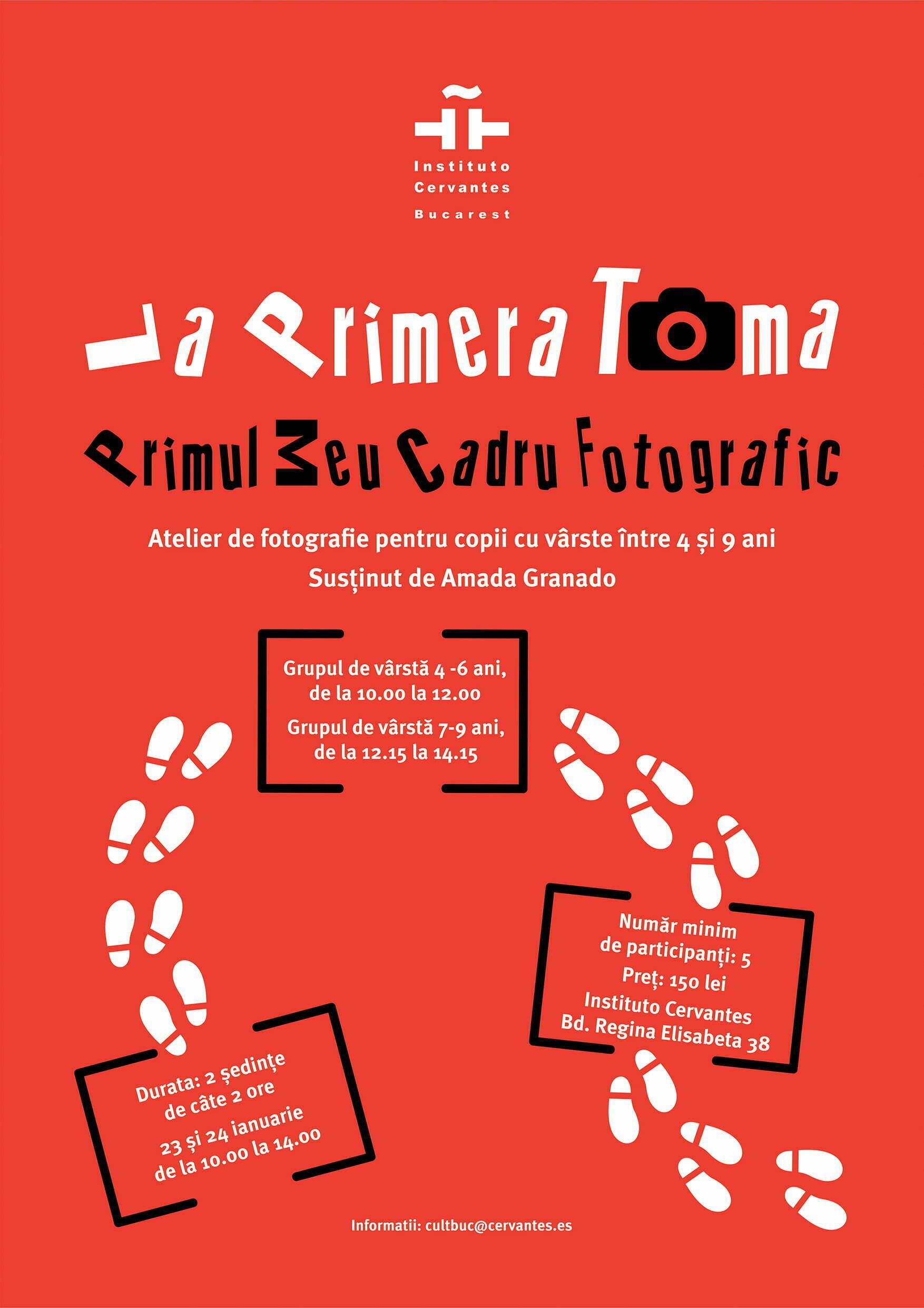 Institutul Cervantes din București debutează seria evenimentelor desfășurate anul acesta la sediul din Bulevardul Regina Elisabeta 38 cu două ateliere de fotografie pentru copii, pentru grupele de vârstă 4-6 ani și 7-9 ani, pe 23 și 24 ianuarie.