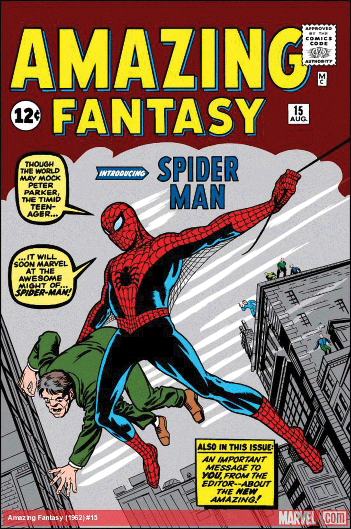 Totuși, Lee a publicat povestea într-o antologie de benzi desenate fantastice, numită Amazing Fantasy, care era aproape de a fi anulată din cauza vânzărilor foarte slabe. Nimănui nu-i păsa de o revistă aflată pe punctul de a se închide, așa că l-a pus pe Spider-Man direct pe copertă.