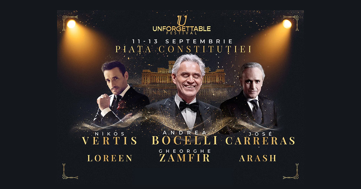 Unforgettable Festival 2025 aduce la București un line-up spectaculos, care combină eleganța muzicii clasice cu energia pop și profunzimea tradiției. Pe scena din Piața Constituției vor urca: Andrea Bocelli, José Carreras, Gheorghe Zamfir, Katherine Jenkins, Nikos Vertis, Andra, Loreen, Arash, Subcarpați Simfonic, Dirijorii David Giménez și Daniel Jinga alături de invitați surpriză.