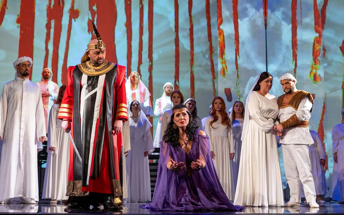 În finalul lunii, sâmbătă, 27 septembrie, stagiunea continuă cu impresionanta operă „Nabucco” de Giuseppe Verdi. Regizat de Anda Tăbăcaru, spectacolul aduce pe scenă o operă monumentală, o lucrare despre care se consideră că a stabilit permanent reputația lui Verdi drept compozitor. Povestea urmărește situația evreilor, pe măsură ce sunt asaltați, cuceriți și, ulterior, exilați din patria lor de către regele babilonian Nabucco (Nabucodonosor al doilea, împărat chaldeean al Babilonului – în original: Nebucadnețar). Evenimentele istorice sunt folosite ca fundal pentru un complot romantic și politic.