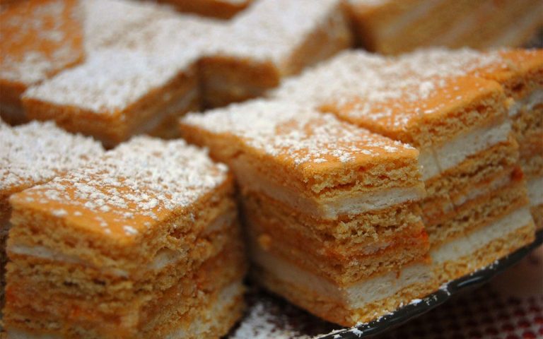 Explicații și completări am găsit pe portalul gastronomic ungar sobors.hu (ați înțeles, sarepiper!) în descrierea „mézes krémes”, versiunea ungurească de dincolo și dincoace de Tisza: