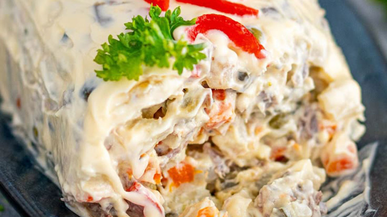 Spun tradițională, pentru că se face cu frecvență de mai mult de trei generații. Ea se trage din salata Olivier via salata rusească. Lucien Olivier a fost un bucătar belgian care a făcut carieră în Rusia țaristă.
