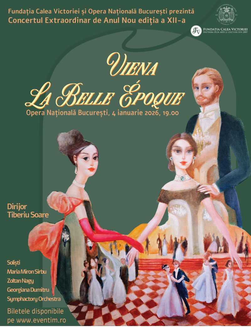 În seara de 4 ianuarie 2026, sunteţi invitaţi la Concertul Extraordinar de Anul Nou, eveniment de gală aflat la a XII-a ediţie, prezentat de Fundaţia Calea Victoriei şi Opera Naţională Bucureşti, în care vă veţi putea delecta cu o călătorie în universul unor mari compozitori, precum Johann Strauss-fiul, Johannes Brahms, Giuseppe Verdi, Jacques Offenbach, Franz Lehár, Emmerich Kálmán şi Émile Waldteufel.