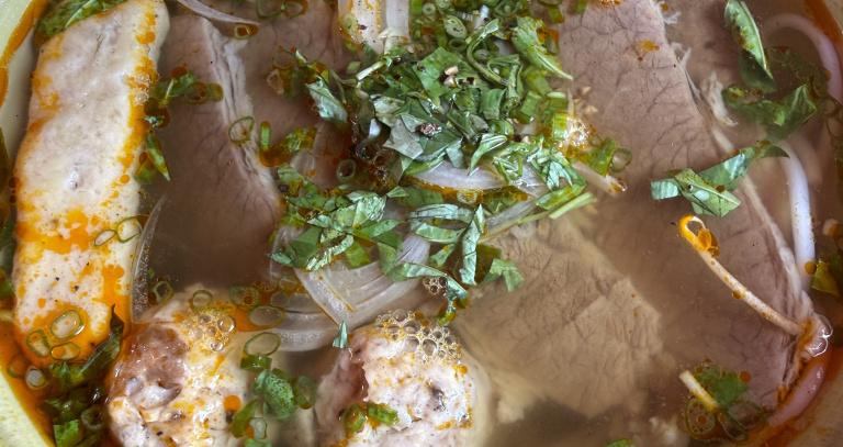 În centru, prin Hoi An și Da Nang, supa e mai clară și mai ușoară, fără dulceața din sud. În Saigon, devine mai încărcată, mai dulceagă, cu mai multe sosuri și intervenții din partea celui care mănâncă. În Delta Mekongului, nu mai există standard. Ce am mâncat acolo era undeva între pho și alte supe locale, gen bún bò Huế sau hủ tiếu, mai tulburi, mai directe, legate de ce e ingrediente sunt disponibile în ziua respectivă.