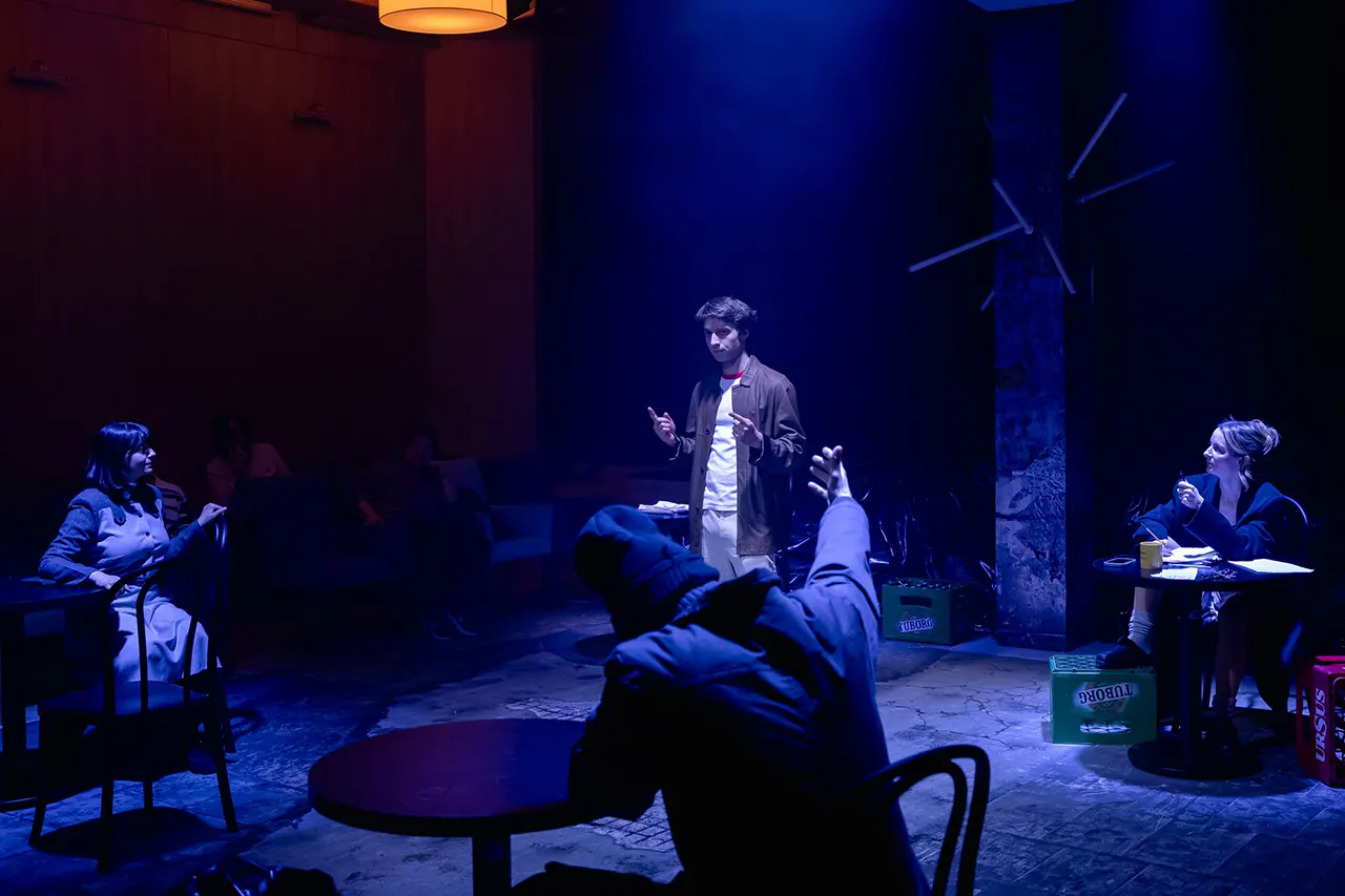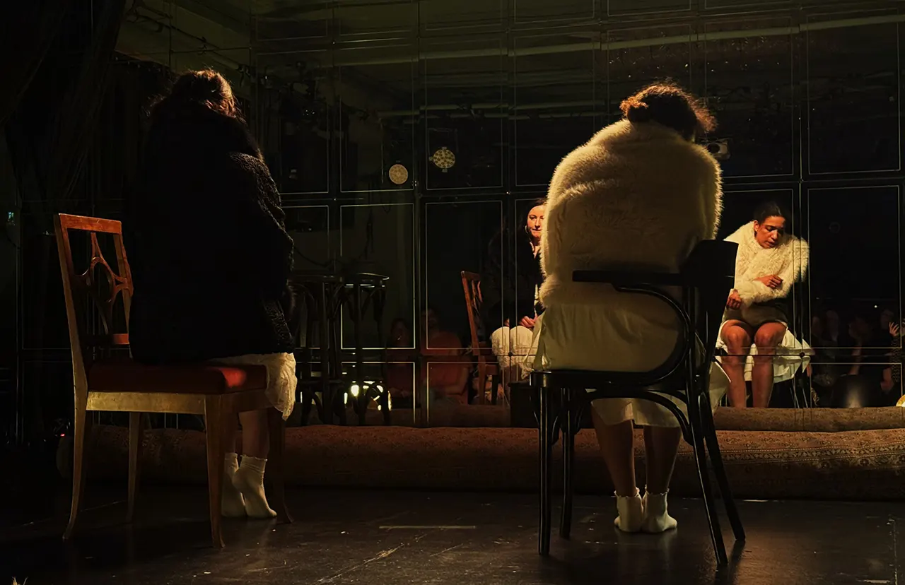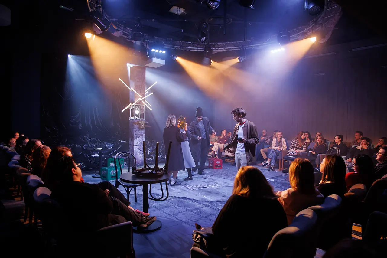 Ora Zero marchează revenirea în peisajul teatral bucureştean a tinerei dramaturge şi regizoare IULIA GRIGORIU, care, de câţiva ani, a decis să îşi continue explorările artistice în Berlin, unde are o activitate remarcabilă în spectrul performativ, indiferent că am avea în vedere instalaţii ca Red Exit şi Dream Gallery sau puneri în scenă precum cele două spectacole din 2025, Billie & Maria de la Volksbühne şi Elefantul din Cameră de la Fritz Theater.