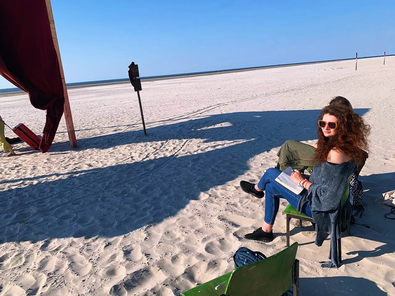 Ca experiență personală, apropo de trecut, o să-ţi vorbesc puțin despre o rezidență pe care am făcut-o pe o insulă în Marea Nordului, Red Exit [instalaţie performativă pe care Iulia Grigoriu a conceput-o pe plaja insulei Spiekeroog din Marea Nordului, în vara anului 2024 – n.r.].