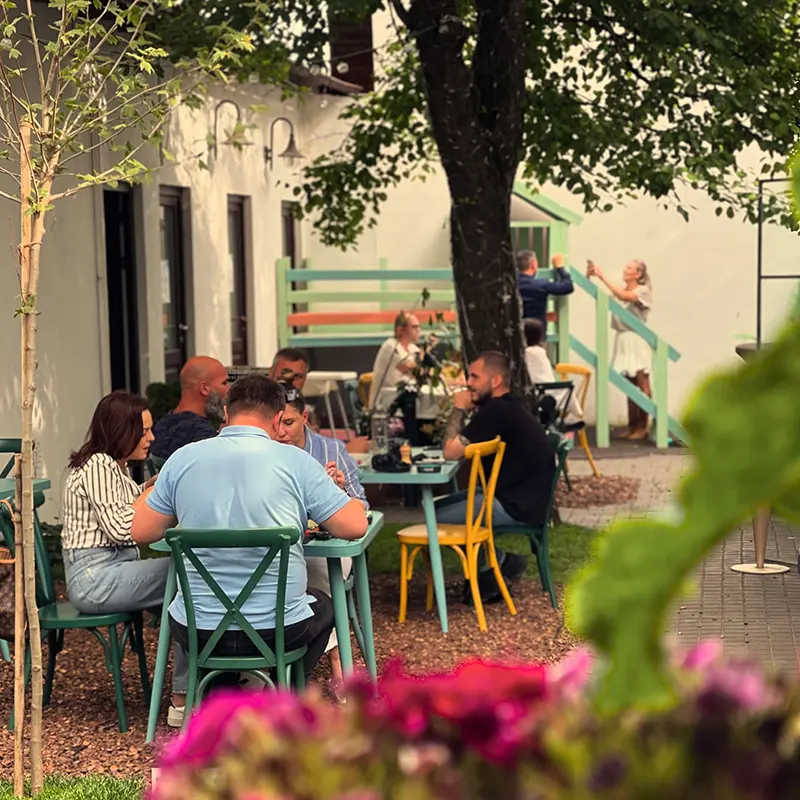 Primăvara în oraș nu vine cu declarații oficiale, ci cu scaune scoase timid pe trotuar, cu pahare reci lăsate să transpire în lumină și cu oameni care redescoperă, aproape emoționați, plăcerea de a sta afară.
