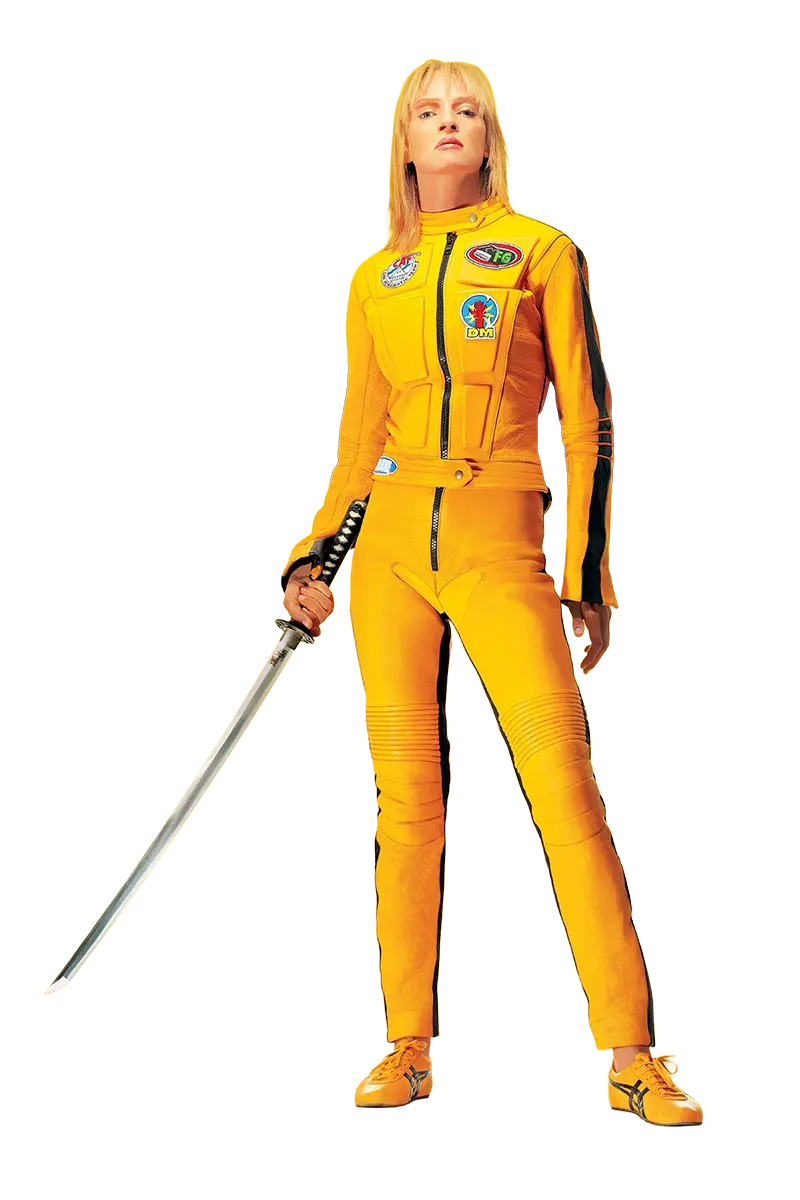 Într-o notă diferită, Kill Bill prezintă costumul ca simbol al puterii. Ținuta galbenă purtată de Uma Thurman, care amintește de estetica artelor marțiale, transformă personajul într-o figură aproape legendară. Același fenomen apare și în Star Wars, The Hunger Games, The Lord of the Rings sau în filmele cu supereroi.