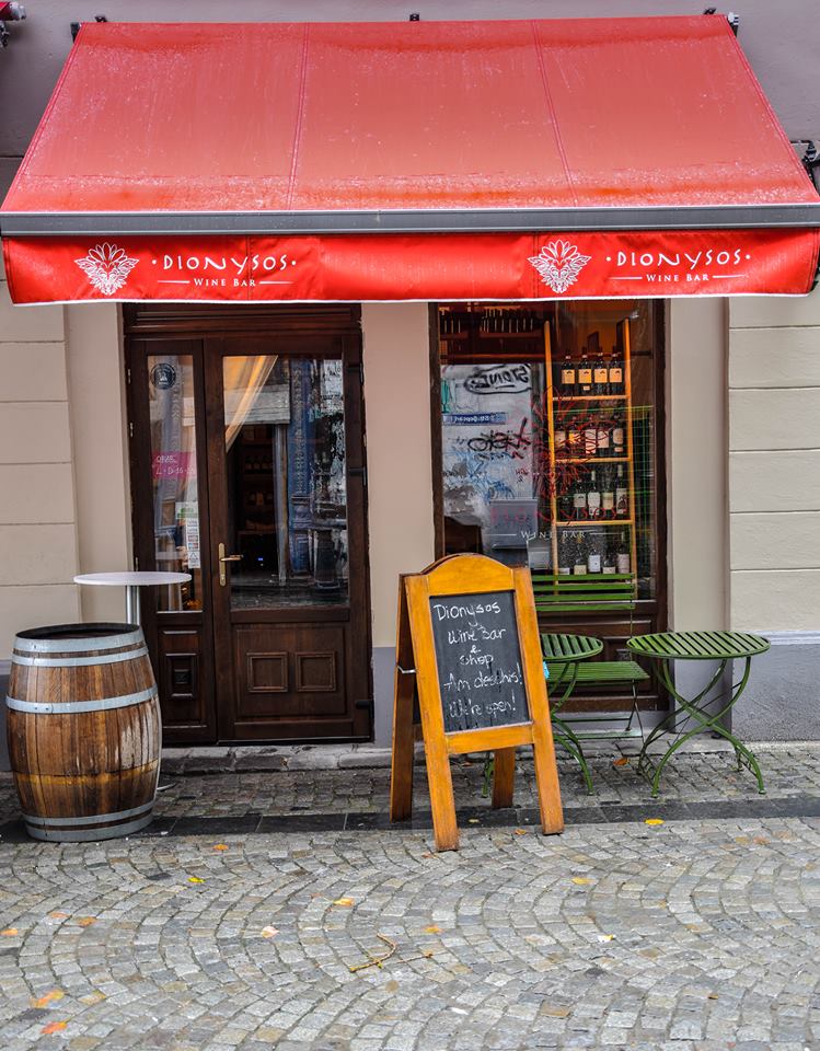 Dionysos îi aşteaptă pe iubitorii de vin cu peste 300 de etichete de la crame româneşti şi internaţionale printre care şi Tignanello, Guado al Tasso, Barolo etc.