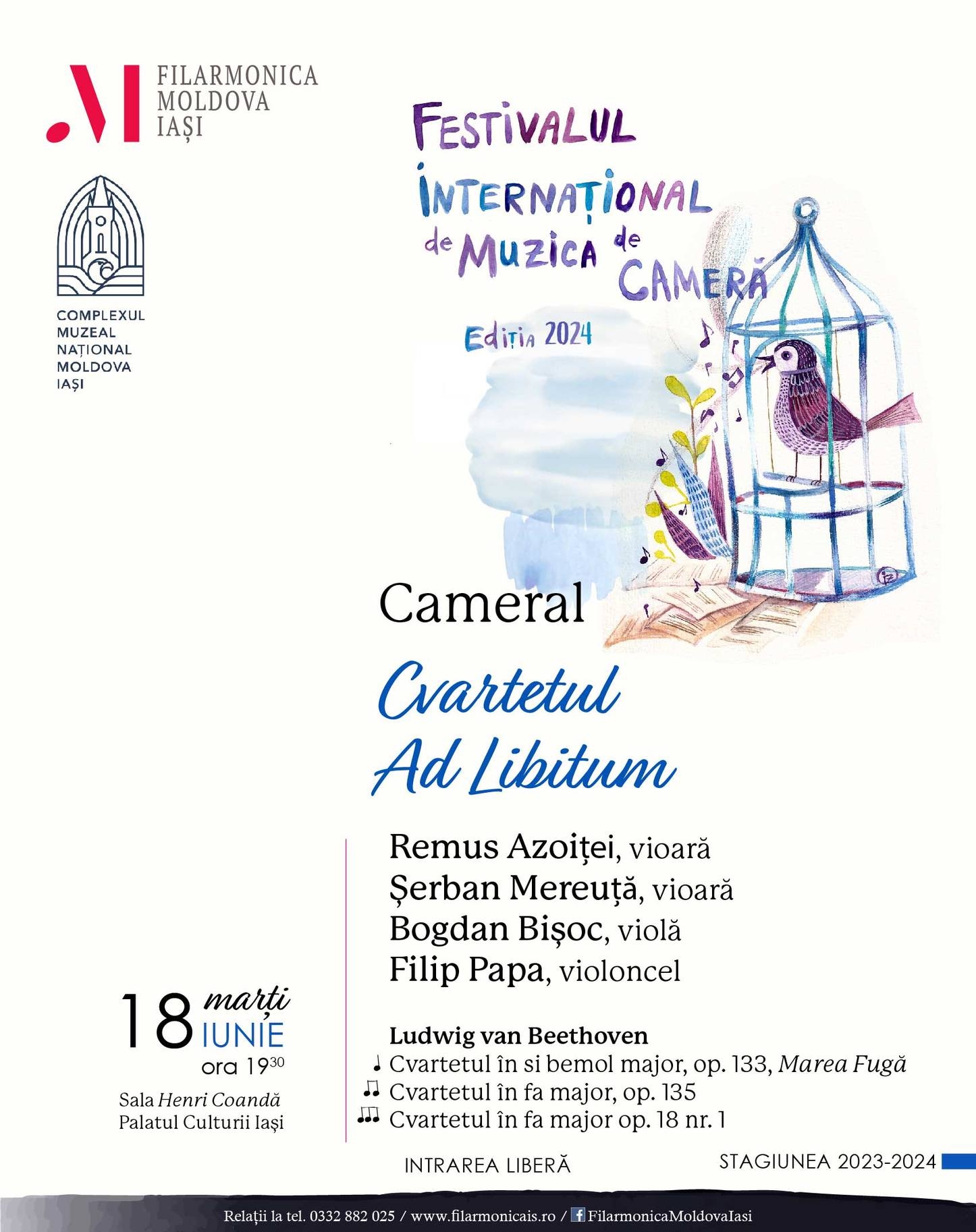 ✅La concertele din 17, 18 și 19 iunie, intrarea publicului este LIBERĂ, în limita locurilor disponibile.