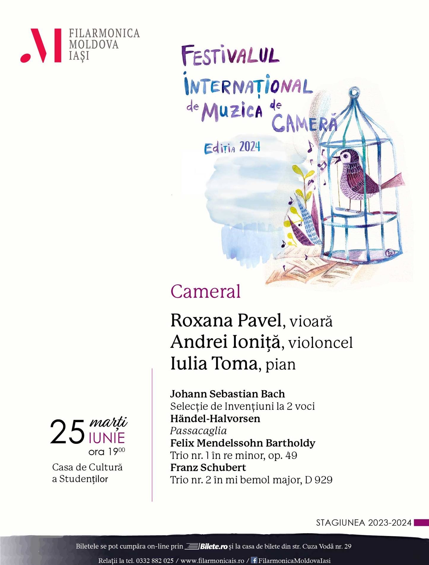 ✅Pentru concertul din 25 iunie, biletele pot fi achiziționate de la Casa de bilete a instituției din str.”Cuza Vodă” nr.29, sau on-line pe www.bilete.ro
