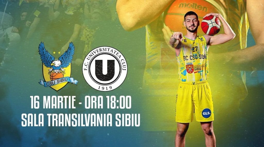 🗓️ 16 martie🕛 18.00📍 Sala Transilvania, SibiuHai cu noi la meci! 💛💙