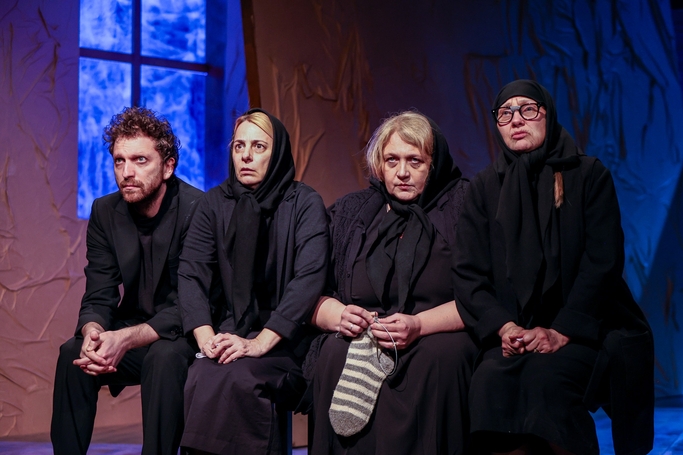 Un spectacol oltenesc, gotic, bizar, sarcastic și tăios ca un pahar de zaibăr pe nemâncate, o comedie neagră cu vampiri, babe-de-o-mie-de-ani și parfum de sarmale, o farsă jucată în ritm drăcesc, dar cu momente de o rară sensibilitate dramatică, care ne face martori la clipa inevitabilă din viața unei familii, în care, cum spune poetul, ,,toate secretele ies la iveală, ca untdelemnul”.