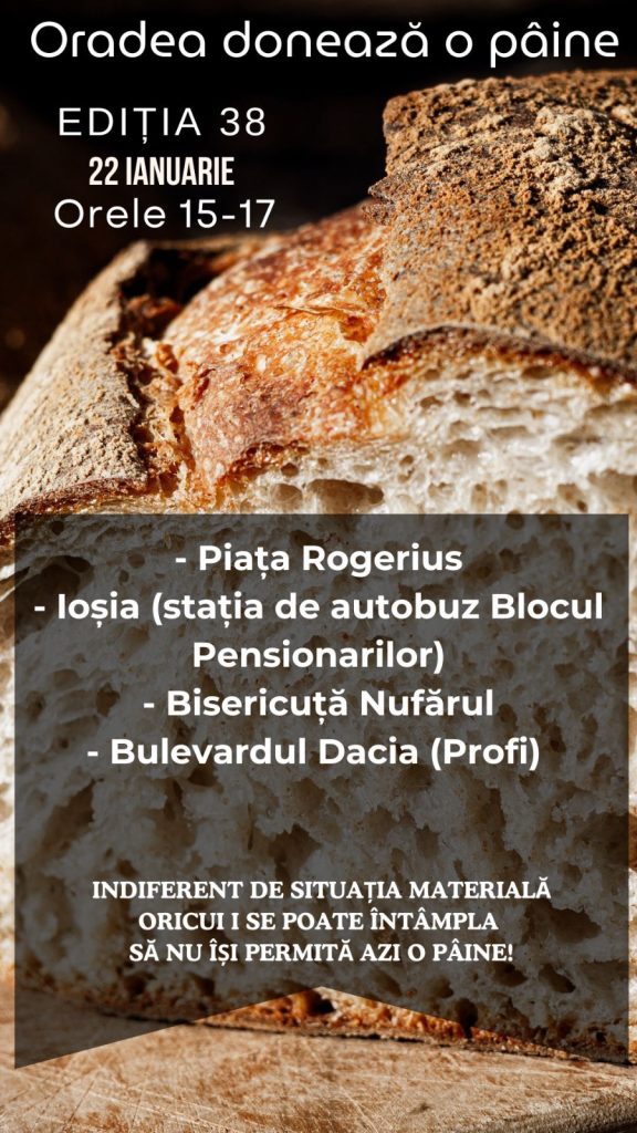 Cu bucurie și entuziasm, vă invităm să participați la o nouă ediție a proiectului nostru iubit, “Oradea donează o pâine”. Ne dăm întâlnire în 22 ianuarie 2026 între orele 15.00-17.00.