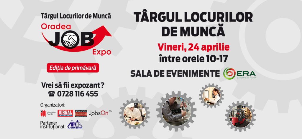 Editia de primavara a Târgului Locurilor de Muncă OradeaJobExpo va avea loc vineri, 24 aprilie, la Era Park Oradea, în SALA DE EVENIMENTE (lângă magazinul Numero UNO), între orele 10:00-17:00!