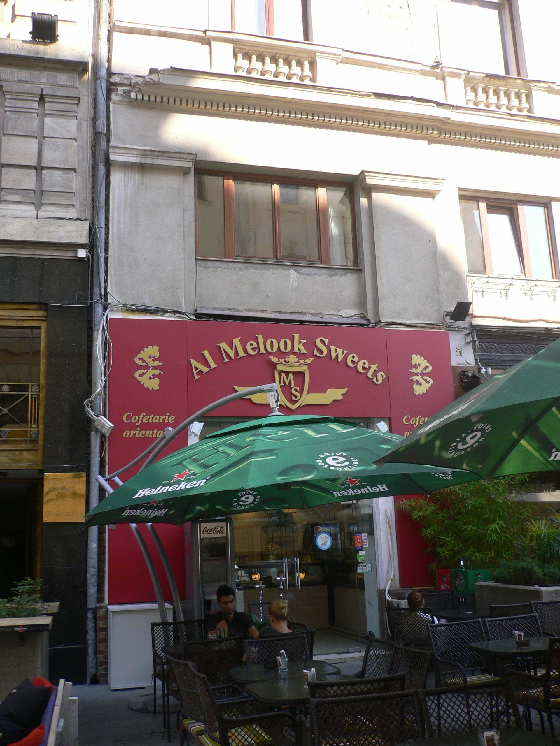 O cofetărie orientală cu un aer aparte, Al Melook Sweets invită amatorii de delicii rare să guste din preparatele îmbietoare, specifice exoticelor bucătării arabe. Al Melook Sweets, cofetărie cu specific oriental, promite clienţilor săi o frumoasă călătorie in lumea gusturilor şi aromelor arabesti: dulciuri rafinate alături de narghilea, cafea şi ceaiuri oferite musafirilor cu dragoste. Un adevarat deliciu il constituie dulciurile traditionale -knafe – (baclava cu fistic, nuca, asmalie, mabrume, mamul, namora, bacaj), dulciurile delicioase insiropate, fistic şi alte delicatese. Bucataria arabă ştie să satisfacă aproape toate gusturile.
