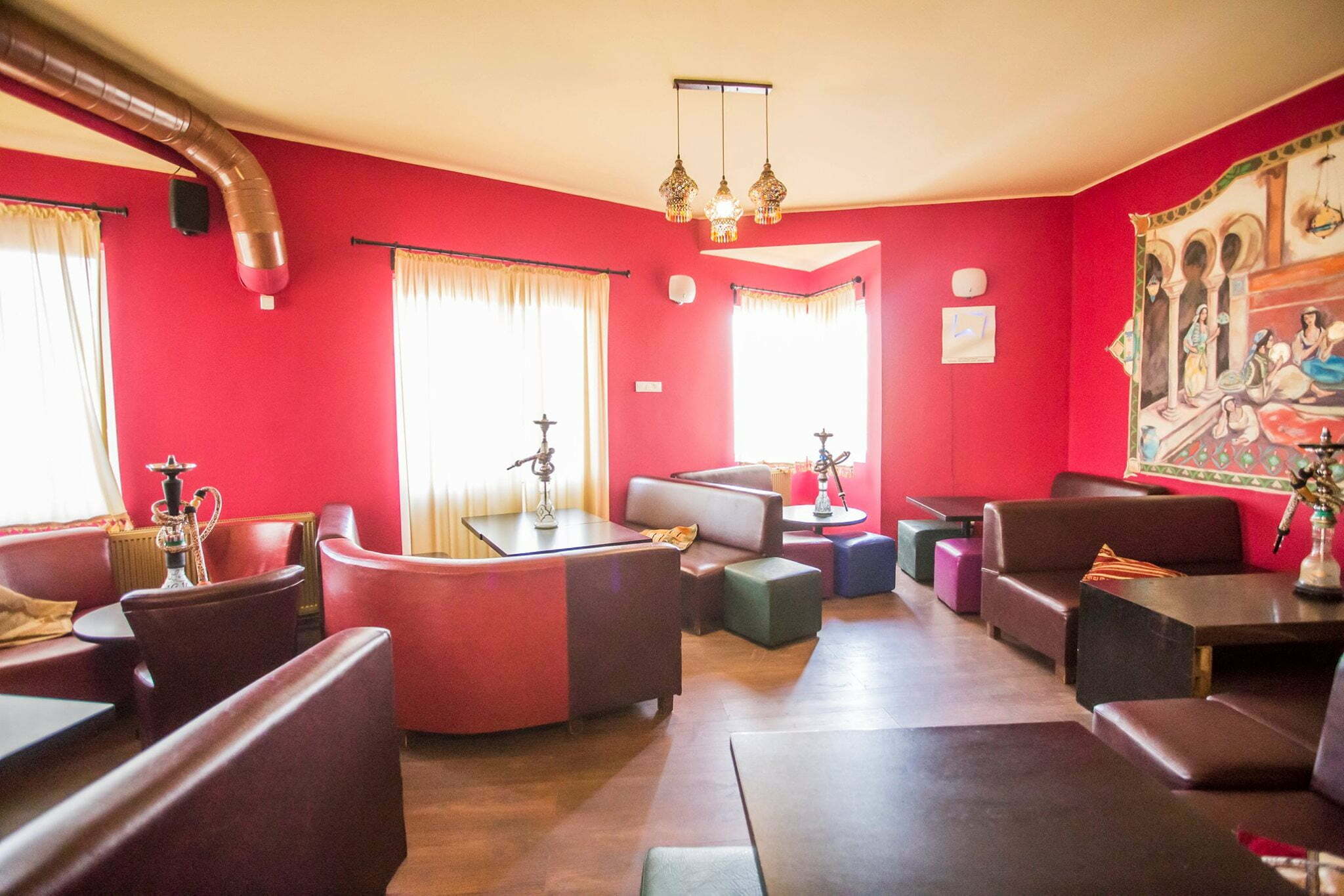Vă punem la dispoziție 3 nivele cuprinzând spațiul necesar delectării pentru cel puțin 200 de persoane, după cum urmează: un salon mare pentru nefumători și o terasă dichisita-la parter, la etajul unu un salon la fel de mare pentru fumători, un separeu oriental și o mini terasă. Etajul doi vă pune la dispoziție un separeu de 25-30 persoane și o terasă înconjurată de un splendid decor natural.