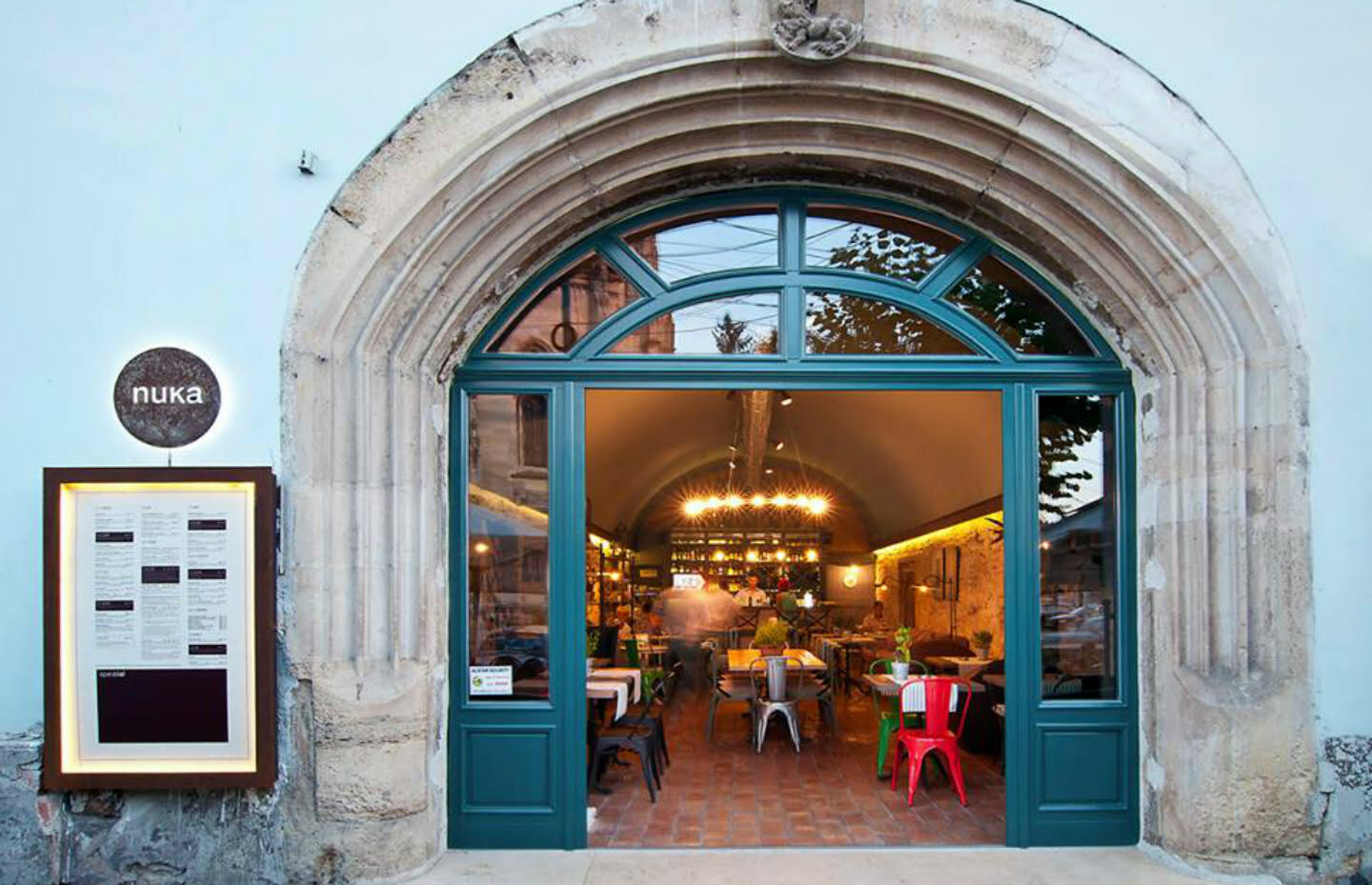 Nuka Bistro își pune mâna pe inimă și inima pe masă: aici ești primit cu prietenie și găsești întotdeauna un motiv să stai mai mult decât ți-ai propus. Poate vrei să citești din cărțile expuse, vei fi tentat de cea mai întăritoare cafea din oraș, de un rose nobil, prezentat impecabil lângă o farfurie cu ceva ce n-ai mai gustat din copilărie, vei visa lângă o porție de lapte de pasăre sau te vei împrieteni cu cineva de-al casei.